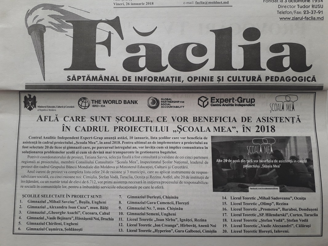 Audiere publică în cadrul proiectului „Școala mea”
