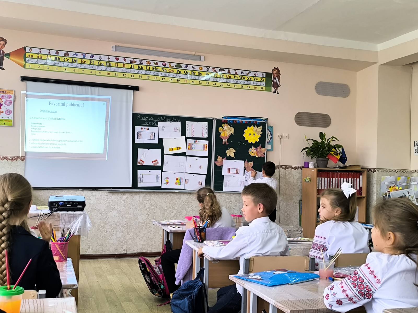 Elevii clasei a 2-a „B” ghidați de învățătoarea Lilia Curbet au demonstrat o oră publică de artă plastică cu tema „Reprezentarea lumii din jur prin puncte, linii, pete, forme și culori”..